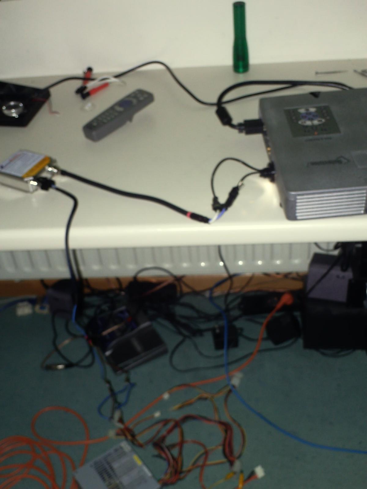 Als erstes hieß es natürlich Testen. Also PC Netzteil mit 10A auf 12V am EVG angeschloßen und mit genügend Respekt vor den 23000 Volt gezündet.