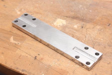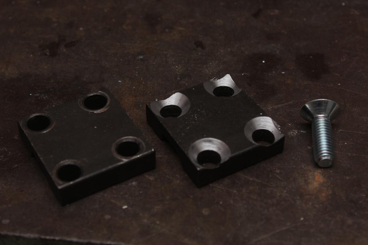 Wie gleich klar wird brauchte ich den Platz auf der Spannplatte. Daher besorgte ich mir M8 Senkkopfschrauben (25mm lang) und versenkte die Löcher in der Platte, bis die Schrauben plan saßen.