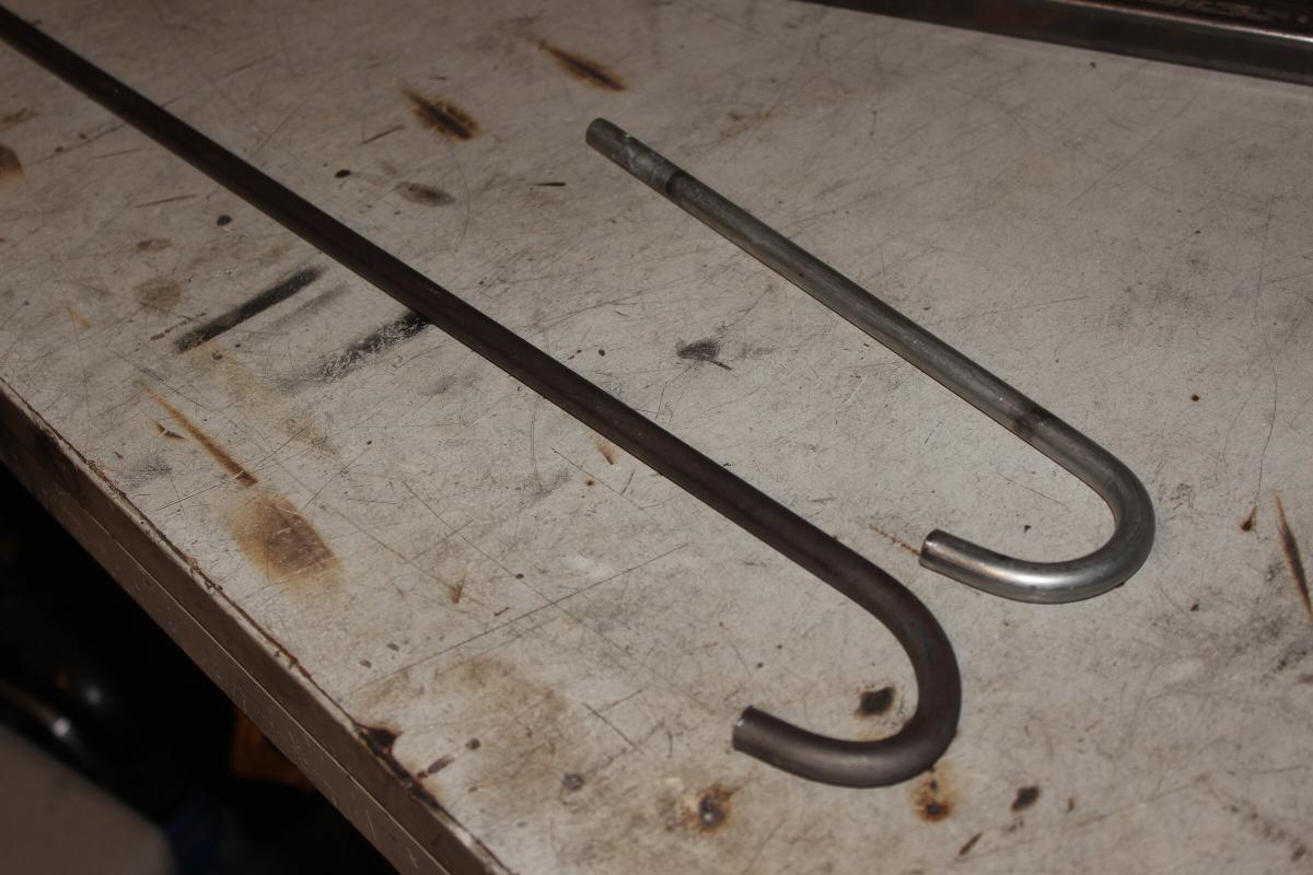Dazu kaufte ich eine Stahlstange mit 10mm Durchmesser, die ich an einem Ende ähnlich wie die originale Lenkstange zu einem Haken gebogen hab. Ohne genau zu wissen welche Länge passend ist hab ich sie großzügig 15cm länger gemacht, was sich als guter Abstand herausgestellt hat.