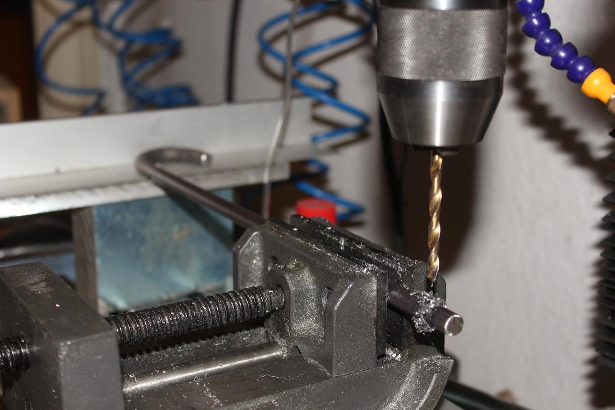 Am oberen Ende der Stange kommt seitlich noch ein 4mm Loch für die Arretierung des Lenkrades.