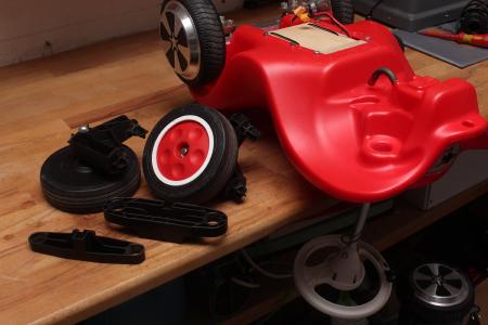 Da das Fahren mit dem Teil nicht nur mir, sondern auch einigen anderen dort viel Spass gemacht hat werde ich wohl die Vorderräder ebenfalls durch Hoverboardreifen ersetzen.