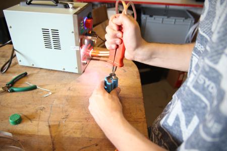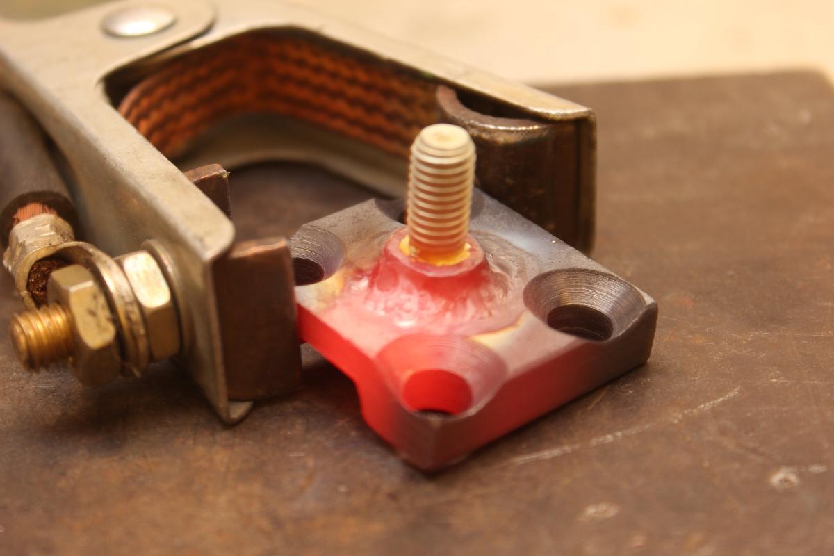 Einige der Hoverboardspannplatten sind aus Aluminium, diese hier war aus Stahl. Das machte es super einfach die Schraube anzuschweißen.
