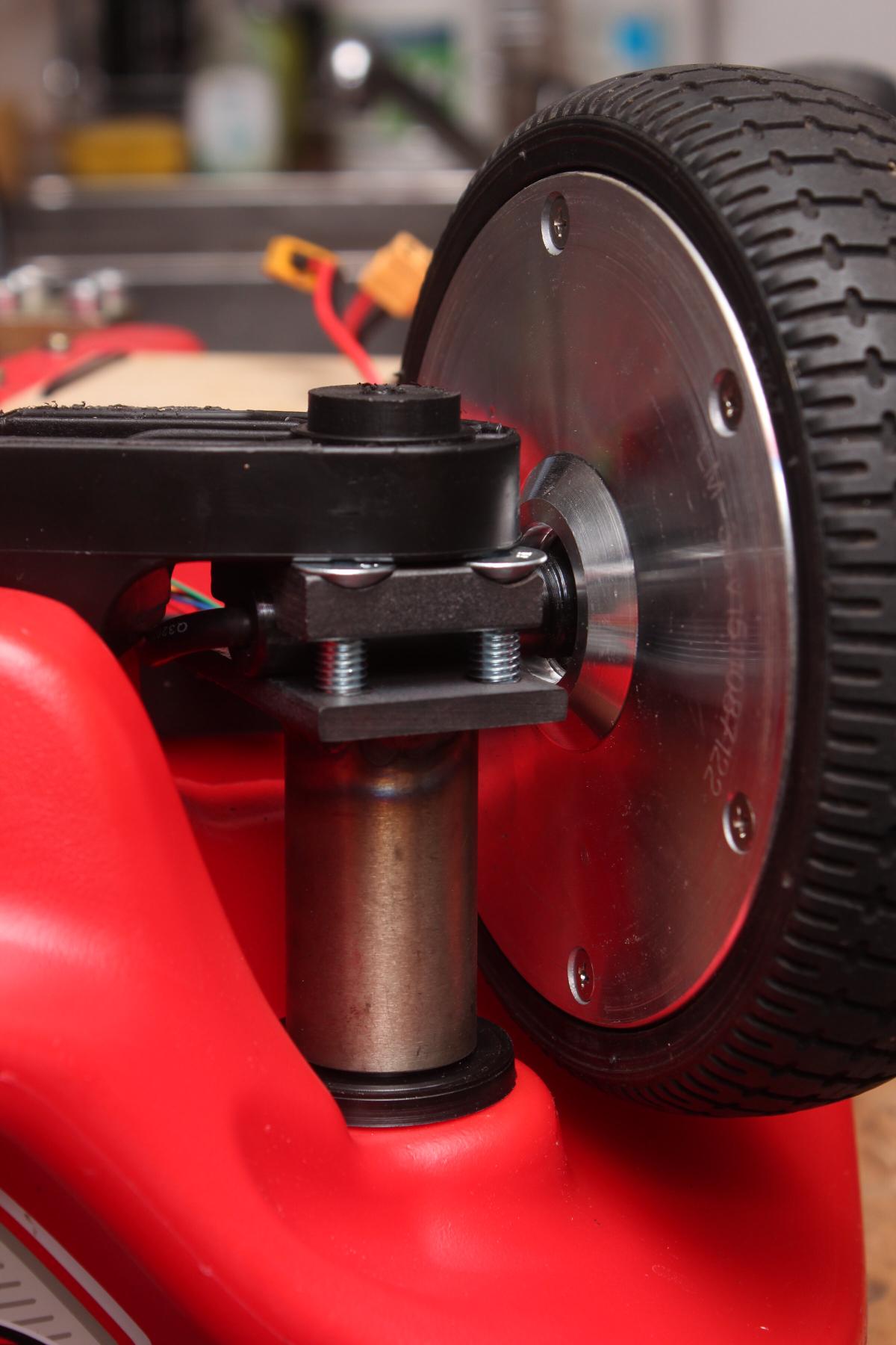 Die Welle der Hoverboardreifen muss, wie auch beim Bobbycar zuvor der Fall, durch die Lenkachse gehen. Der einfache Weg “Stange rein, Reifen dran!” war dadurch nicht möglich.