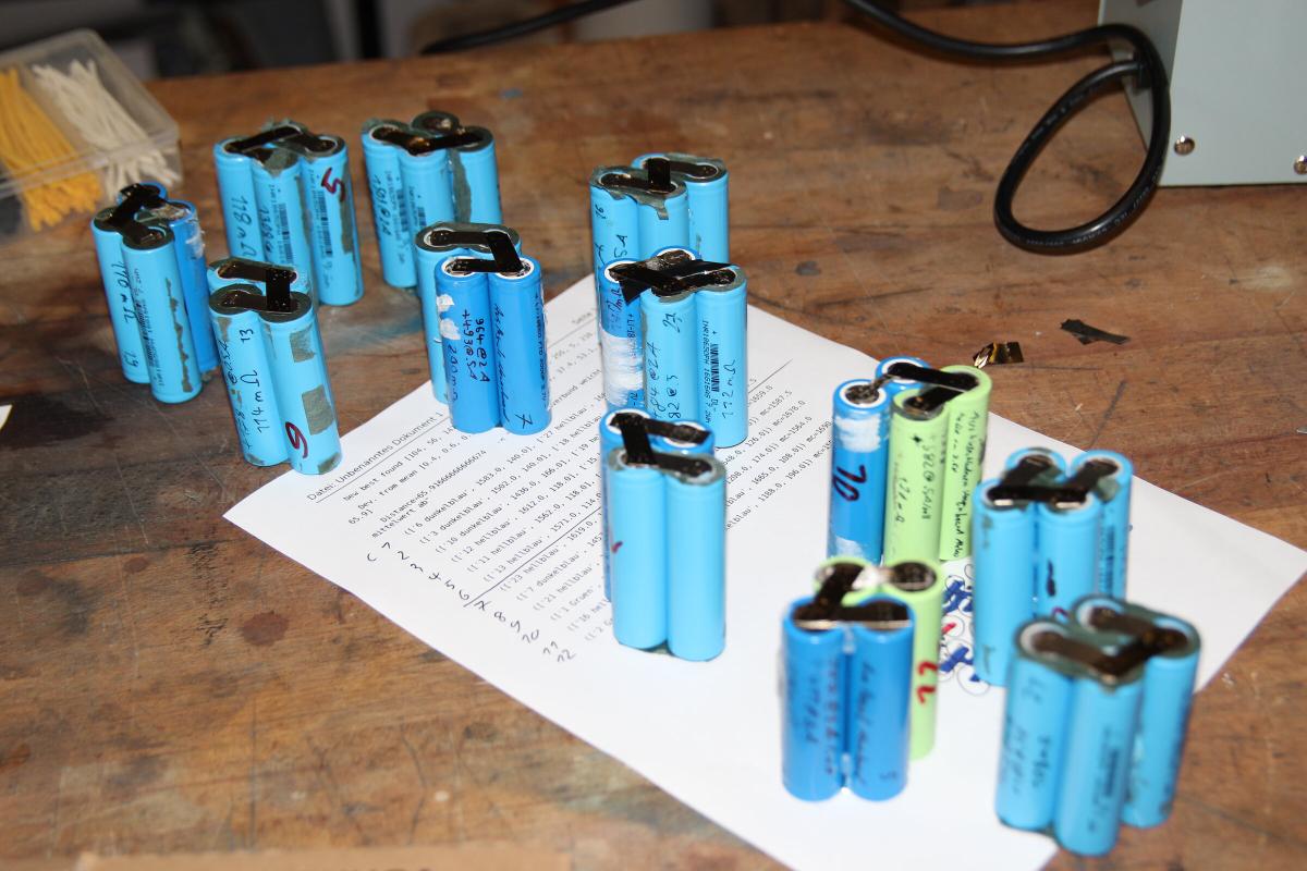 Drei der 27 2P Akkus hatten einen sichtlich höheren Innenwiderstand. Mit den verbleibenden 24 Doppelzellen konnte ich dann das 12S Paket planen.