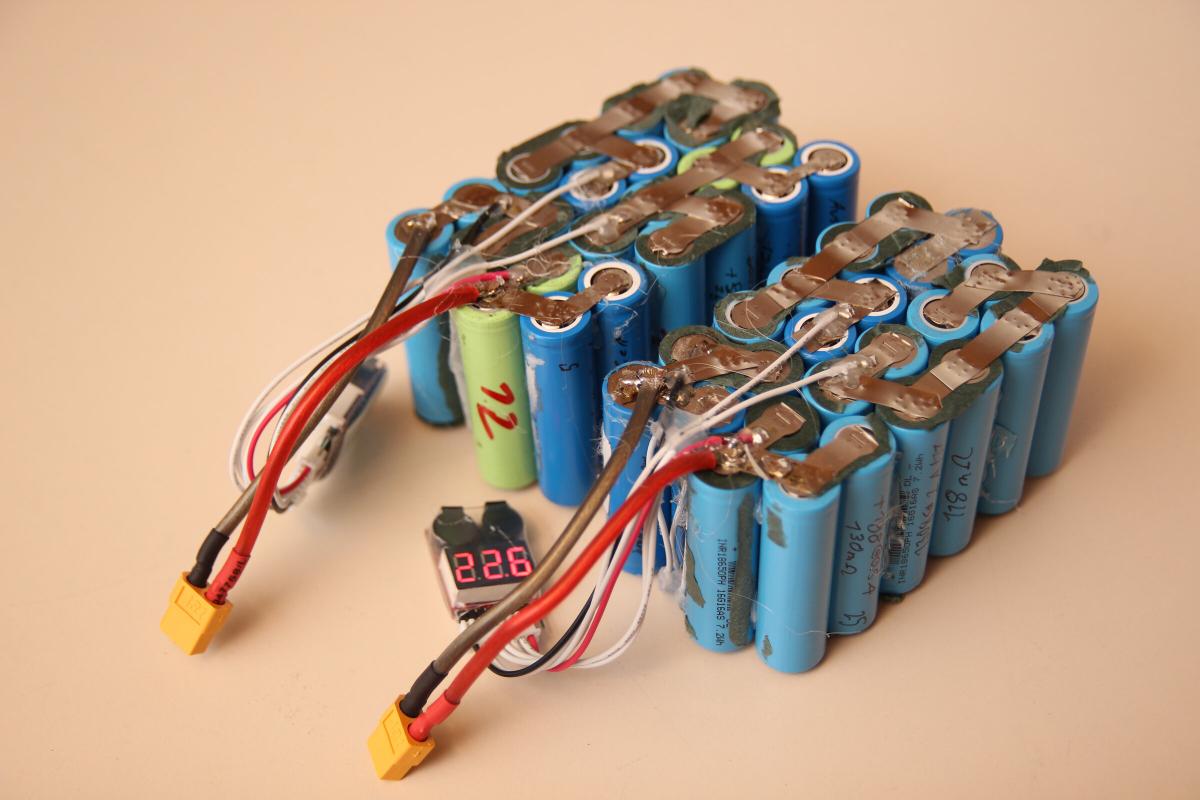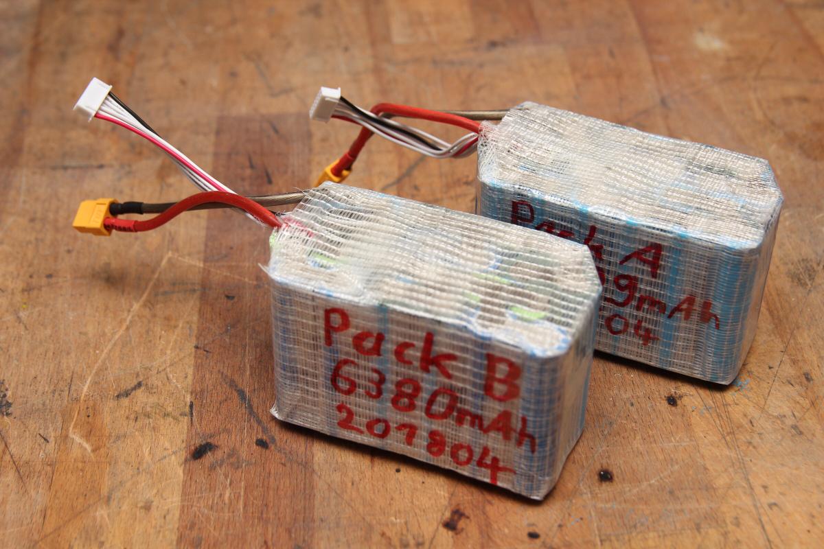 Wie in der Liste zu sehen hab ich den 12S Akku in zwei 6S4P Packs aufgeteilt. Dadurch hab ich die Möglichkeit mein normales Modellbau Lipoladegerät zu verwenden. Zudem hätte ein großer Akku nicht durch die Öffnung gepasst.