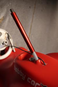 Zwei Stücke Pneumatikschlauch fixieren von nun an das rot eloxierte Alurohr.