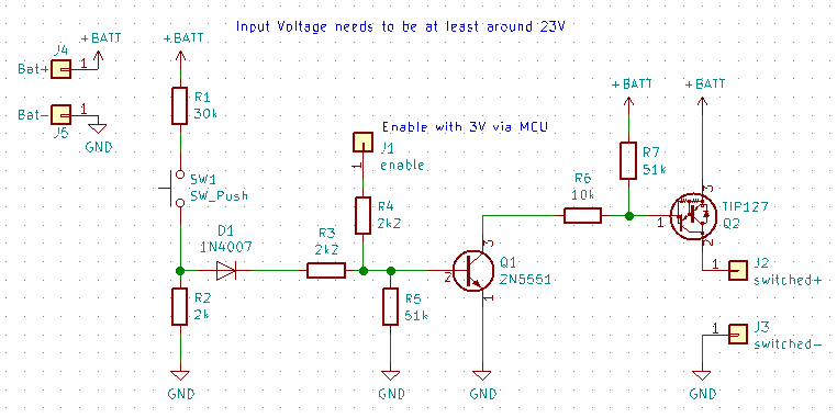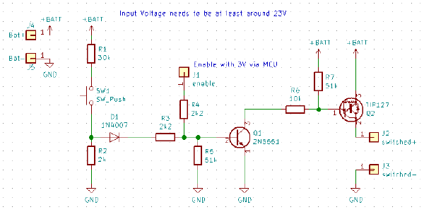 Die Latch Schaltung hab ich dazu aus dem Hoverboard Schaltplan entnommen und auf eine kleine Platine aufgebaut.