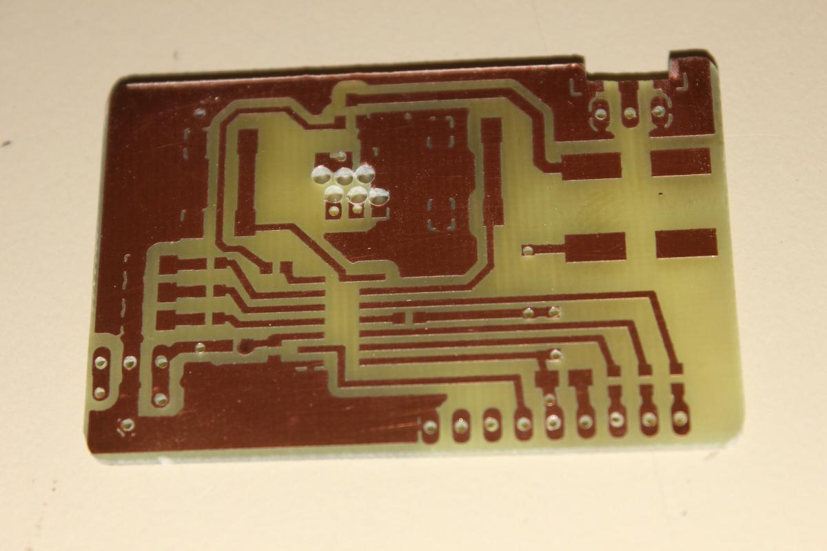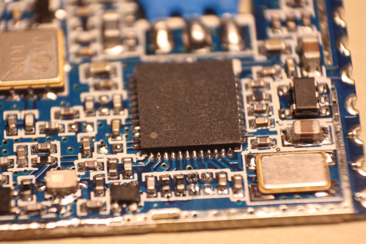 Die Platine ist möglichst kompakt gehalten, sodass SPI Programmierpads nicht mehr passten. Also mussten zum Flashen ein paar Kabel direkt an den Chip gelötet werden.