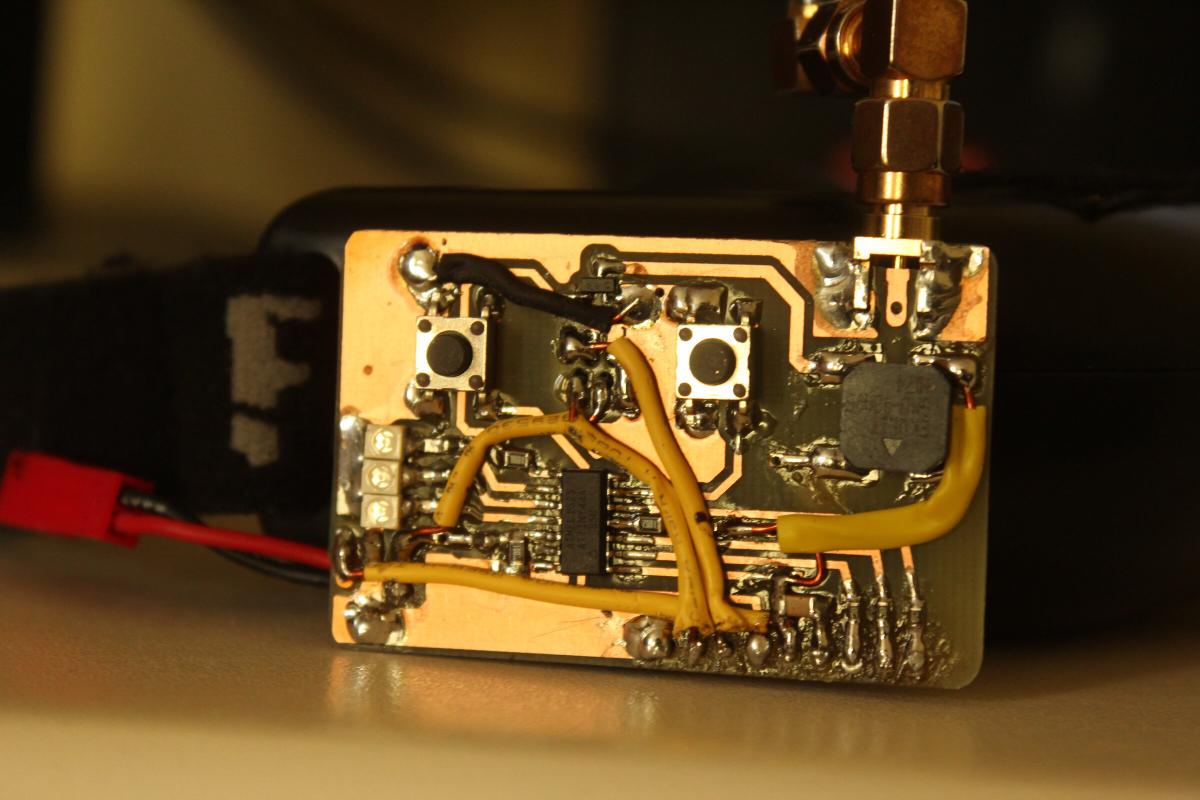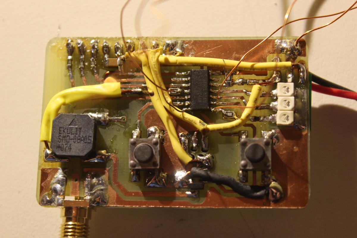 Auch hierfür hab ich wieder eines der günstigen 5.8GHz Empfängermodule genommen, aber diesmal wird es per SPI von einem ATTiny44 gesteuert. Also keine DIP Schalter mehr.