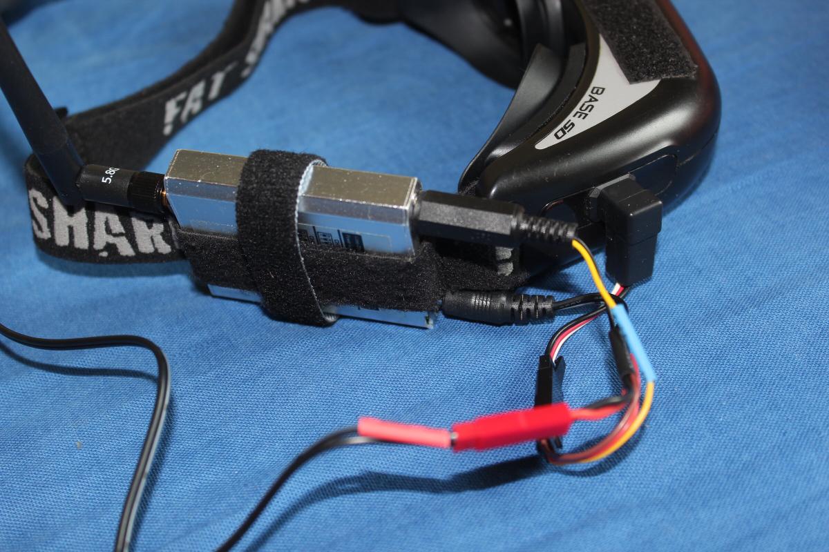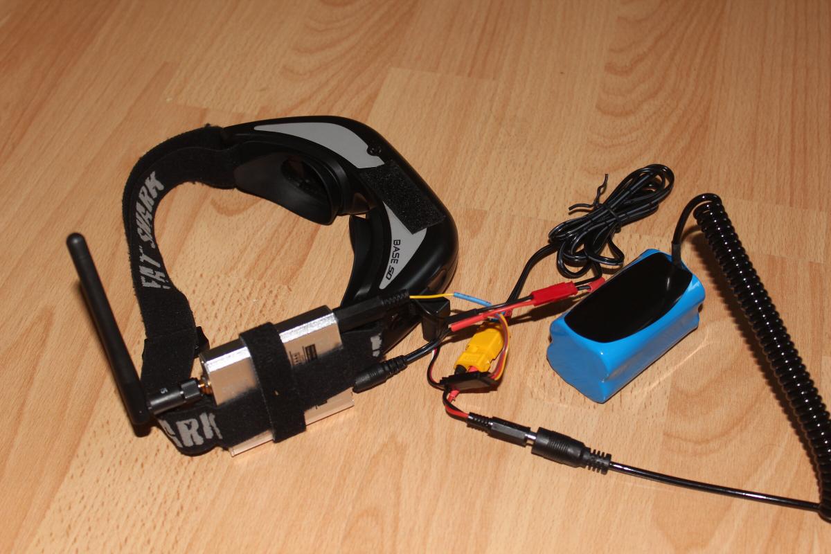 Einen “Futaba” Stecker für die Brille hatte ich noch übrig. Strom für Brille und Empfänger kommt von einem 3S, oder besser 2S LiPo/LiIon Akku, der am Ende eines etwas längeren Kabels hängt. Alles andere ist denke ich selbsterklärend.
