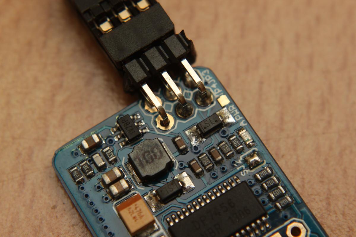 Da die 5V Lötbrücke auf der Oberseite und die Massebrücke auf der Unterseite bereits geschlossen waren, bekommt der MAX7456 seine Versorgungsspannug vom Multiwii (bzw dem FTDI Adapter).
