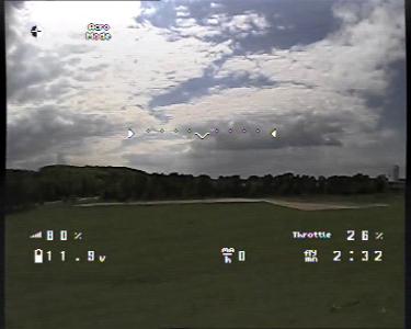 Nachdem Spannung und RSSI, sowie der Horizont (über die Daten des MultiWii) funtionierte wurde es Zeit für ein paar Testflüge.