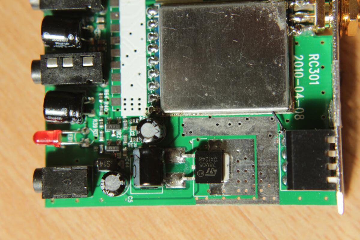 Also entweder man Betreibt den Receiver mit einem 2S Lipo (bzw. 7,5V) oder man überbrückt den 78M05 Spannungsregler und kümmert sich selber um die 5V.