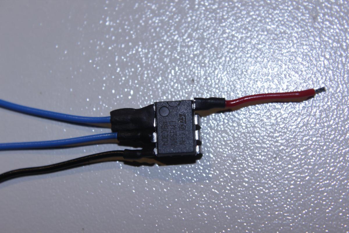 Zum Kurzschlussschutz hab ich den OpAmp großzügig in Schrumpfschlauch versteckt.