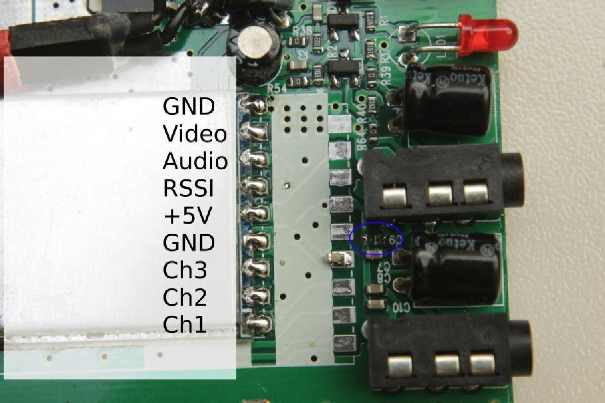 Die Bezeichnung der Pins steht hier nützlicherweise direkt daneben. Allerdings sollte man diese lieber noch ein zweites mal mit dem Datenblatt des RTC6715 Datenblatt des RTC6715 vergleichen und durchmessen.