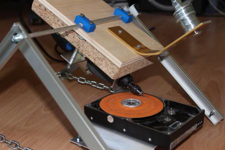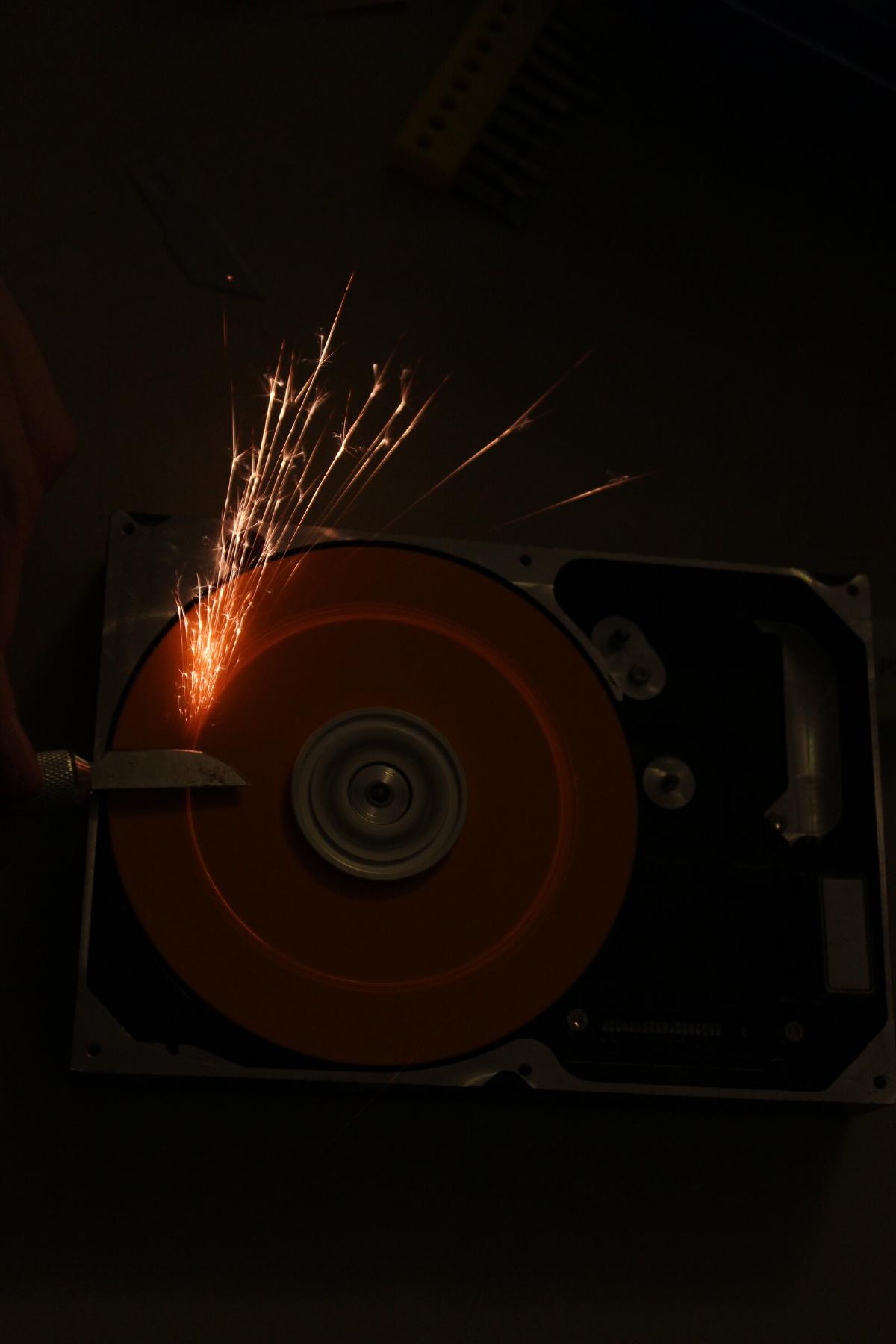 Beim Arbeiten mit den Plattentellern sollte man etwas vorsichtig sein, da es Festplatten gibt, bei denen die Platten aus metallbeschichteten Glas bestehen. Ob solche sich aber überhaupt zum draufrumschleifen eignen kann ich nicht bestätigen, ganz lustig ist es aber nicht wenn solch eine beim Schleifen nachgibt.