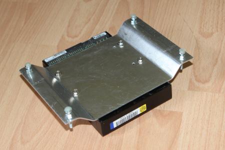 Da die Festplatte etwas zu rutschig ist hab ich sie auf einem Alublecht fest geschraubt. Auf den Köpfen der vier Schrauben sorgt ein Klumpen Heißkleber für sicheren Halt.