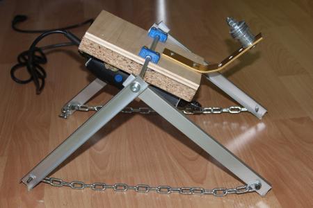 Die Ketten können an verschiedenen Stellen an den Aluminium U-Profilen verschraubt werden, wodurch die sich die Höhe des Dremels, und somit gleichzeitig der Winkel der Spitze, variiert lässt.