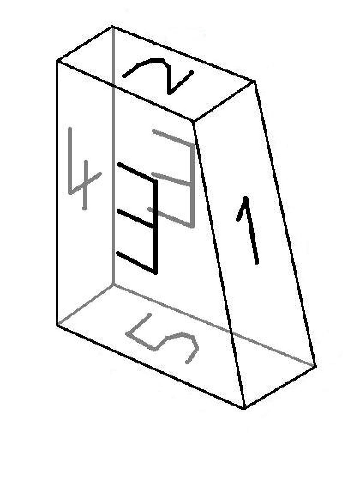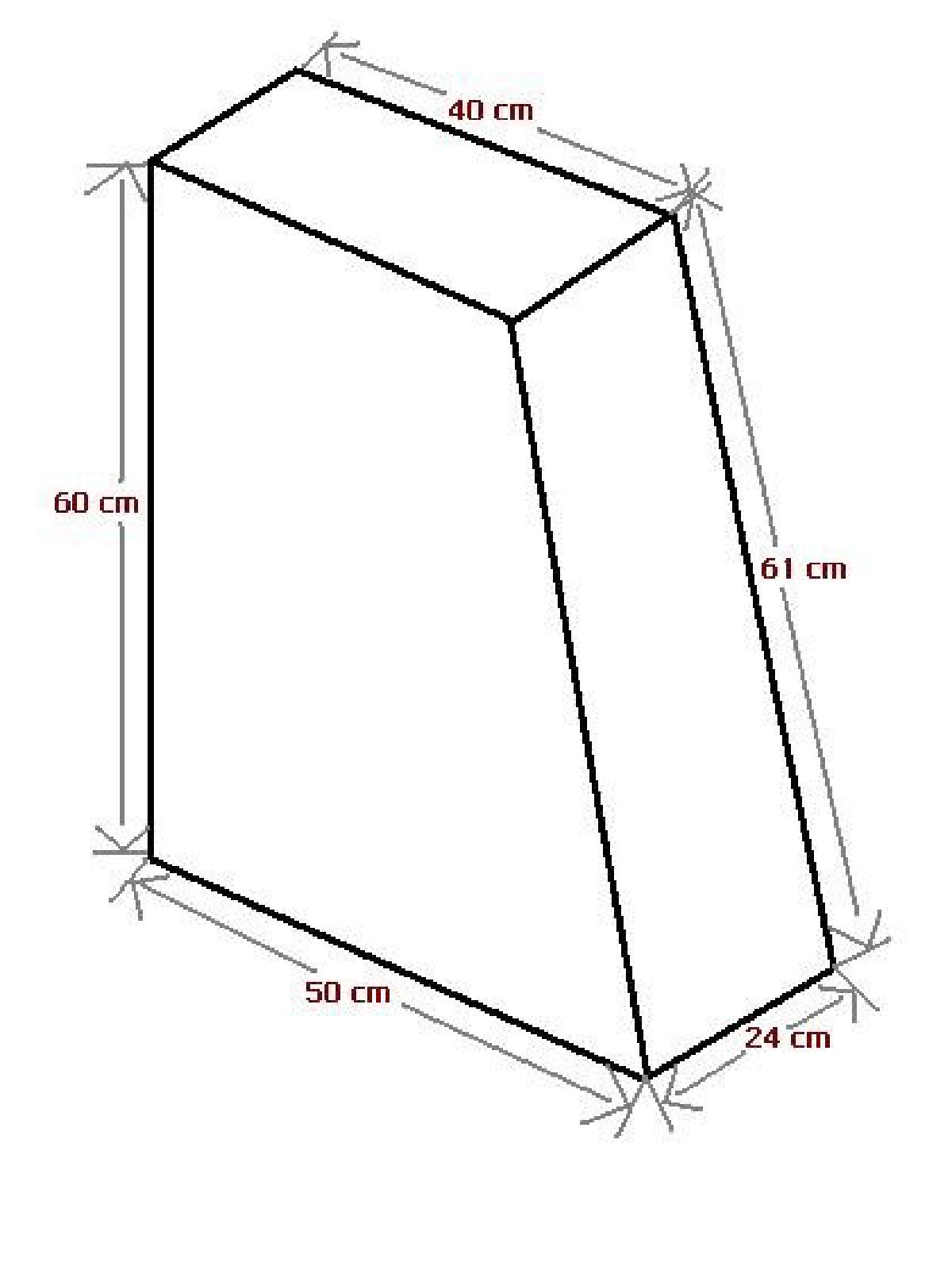 1 : 24cm * 61cm 2 : 20cm * 36cm 2x 3 : (60cm * [63 + 46,3cm)]/2 4 : 24cm * 61cm 5 : 20cm * 46cm