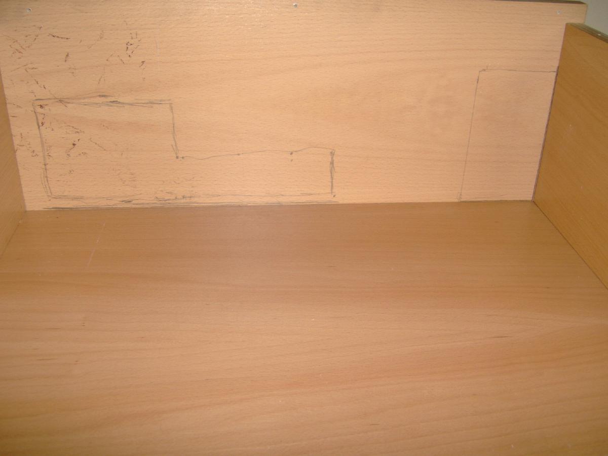 Linke Seite ausgesägt, dort kommt das Gitter rein: