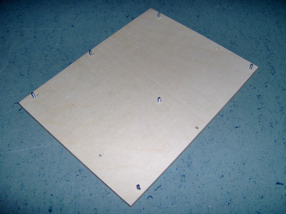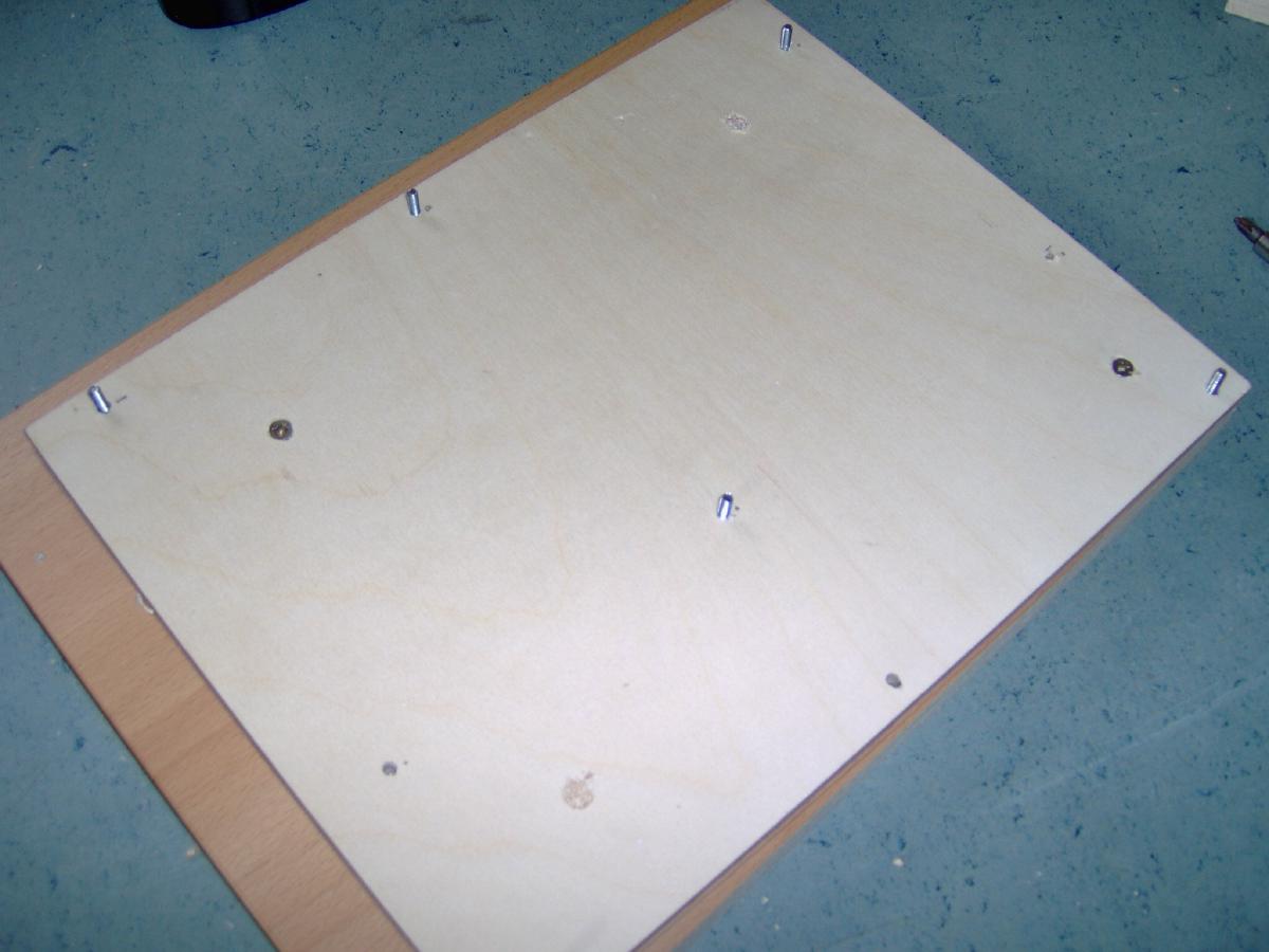 Durch eine Holzplatte hab ich ein paar Gewindeschrauben gesteckt, damit