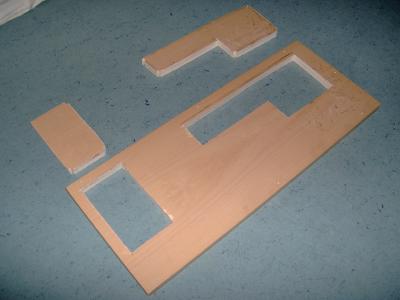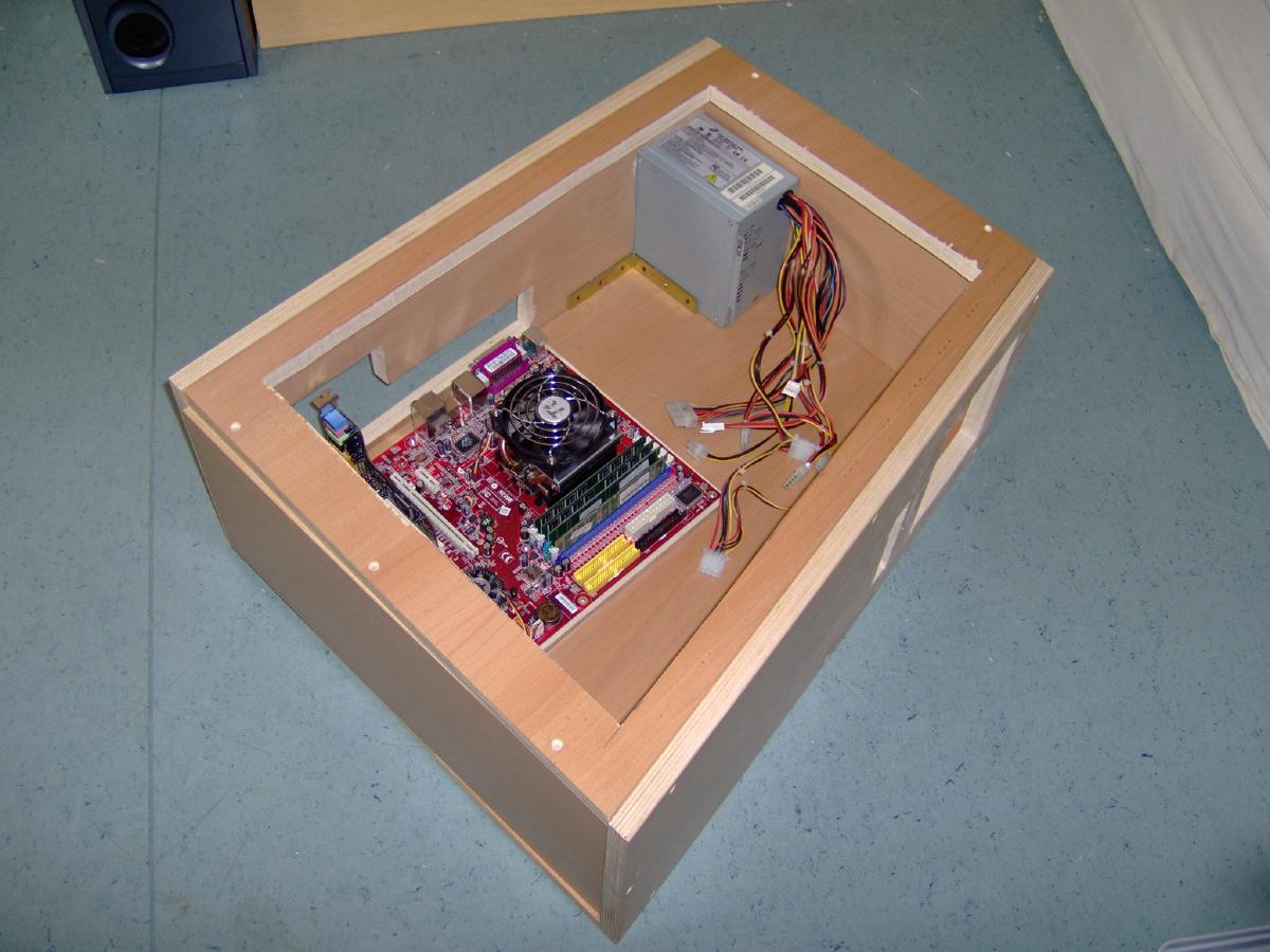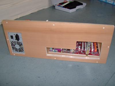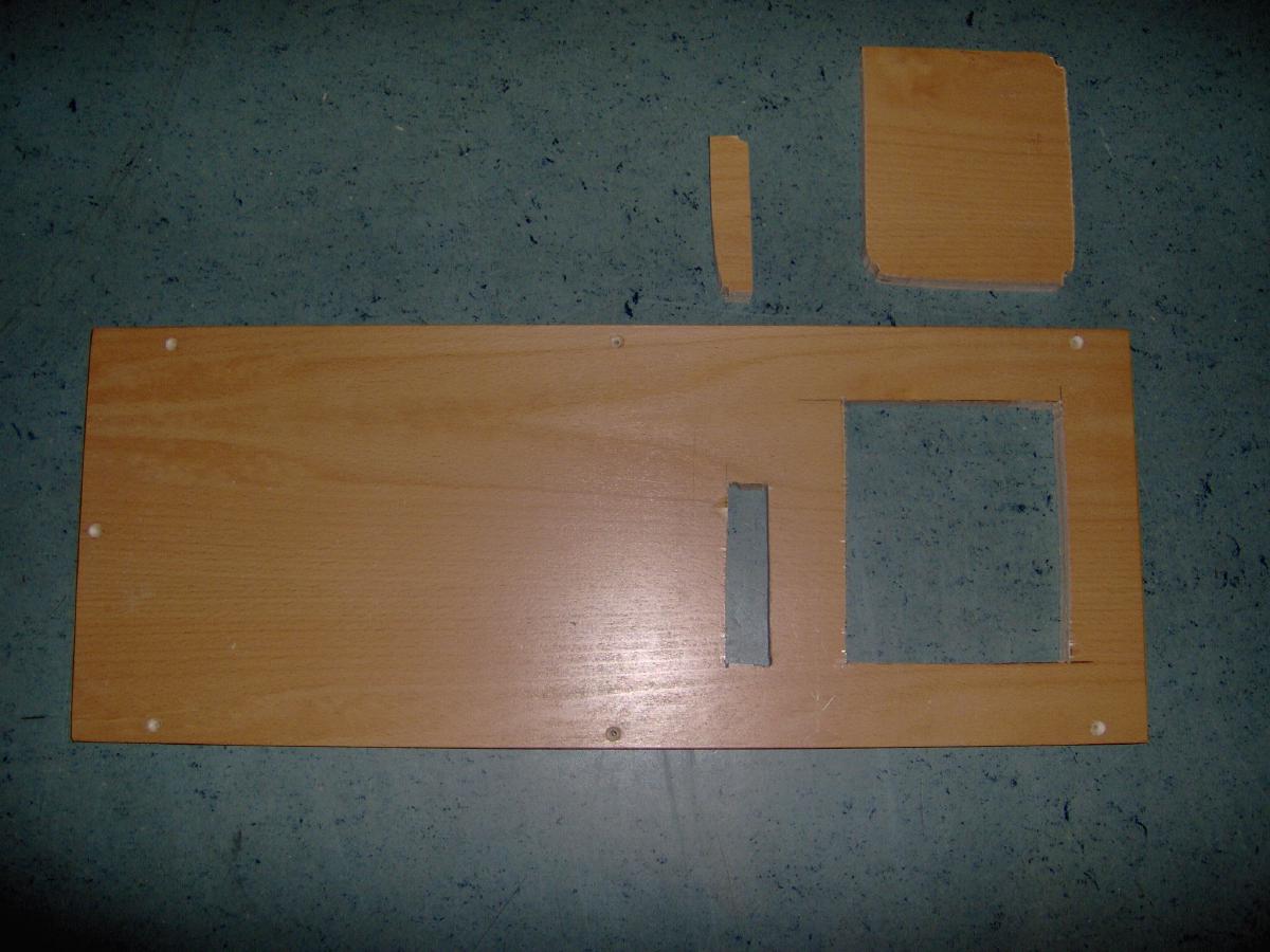 Hier sieht man, wo das Holz für das Netzteil und das Mainboard