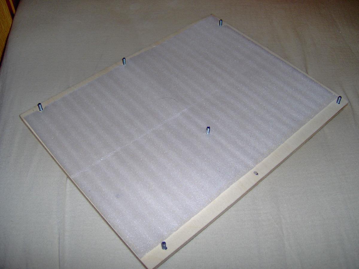 Auf den “Holz-Mainboardschlitten” noch eine Folie, damit keine Schäden entstehen:
