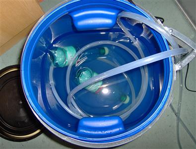 und ein zweiter Schlauch durch den das Wasser zurück läuft.