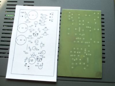 - Platinenlayout spiegelverkehrt auf ein beschichtetes Blatt drucken (Wichtig, Laserdrucker mit viel Tonerauftrag und dabei beschichtetes Papier aus einem Reichelt oder auch Conrad Katalog, etc. verwenden)