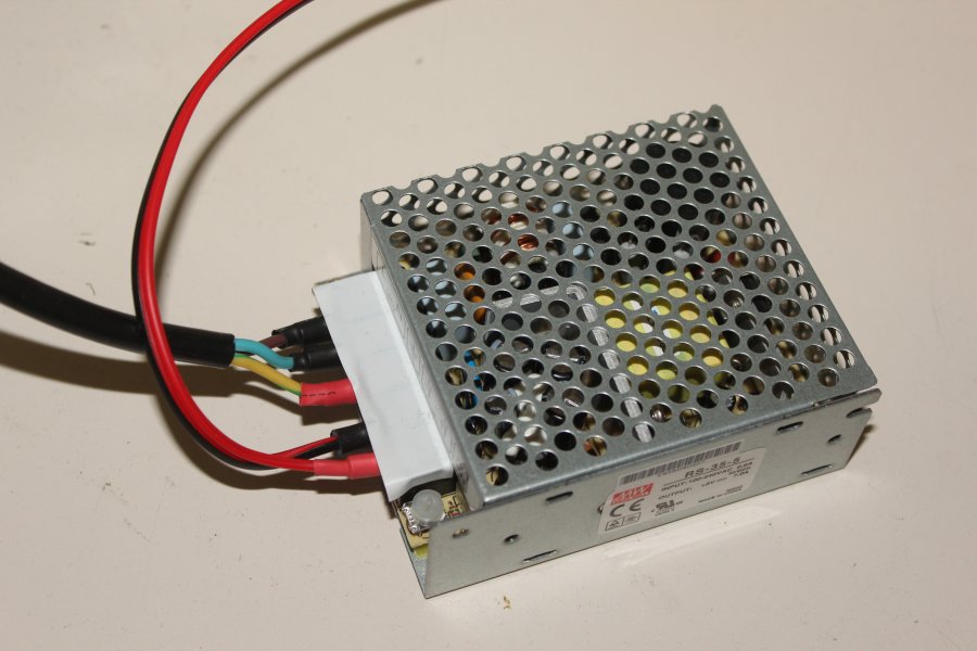 Die 112 LED ziehen bei voller Leuchtstärke gerade bei nur 5V eine menge Strom. Um auf der sicheren Seite zu sein hab ich ein 7A 5V Netzteil verwendet, das