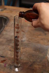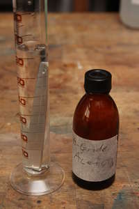 Das Aceton schütte ich in eine entsprechend gekennzeichnete Flasche zur Wiederverwendung zurück.