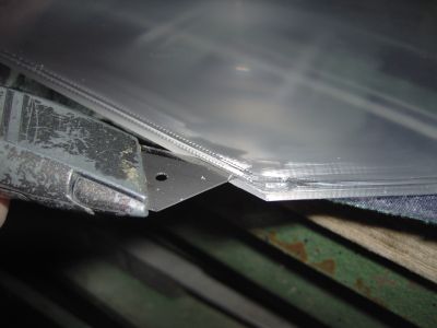 Die Fresnel kommt unter den Rahmen und wird mit diesen Alustückchen dort festgedrückt