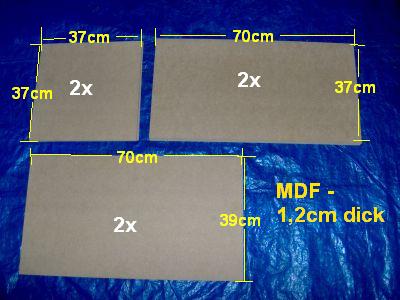 Das Gehäuse besteht aus 1,2 mm dicken MDF Platten.