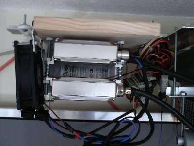 Den Lüfter, welcher die EVG's leicht kühlt, hab ich dann auch noch an der Seite befestigt