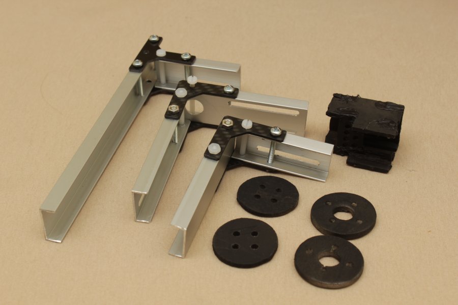 Nichts wirklich unglaublich besonderes, drei Winkel mit passenden Langlöchern zum justierbaren abringen der Motoren. Die Mobius wird mit Klettband auf die Trägerplatte geklettet und mit zwei Gummibändern gesichert.