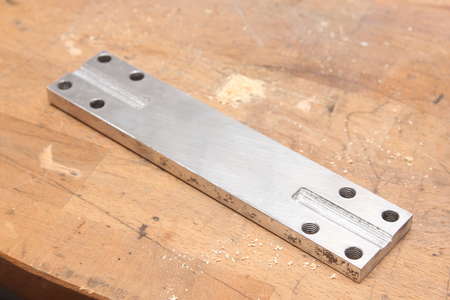 Eventually a long piece of wood was sitting inside the chassis. Two wooden blocks were used as spacers. Finally six wood screws clamp the aluminium bar to the plastic chassis.