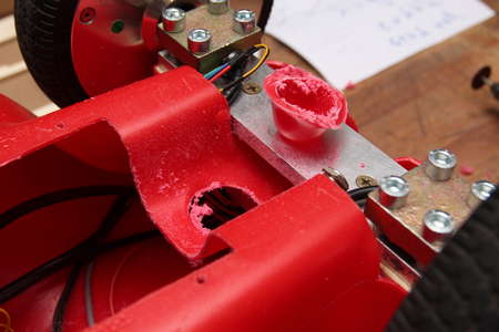 The cabling from the front wheels was routed through the shortest path into the body of the vehicle. This meant drilling two holes to fit the connectors and wires through.