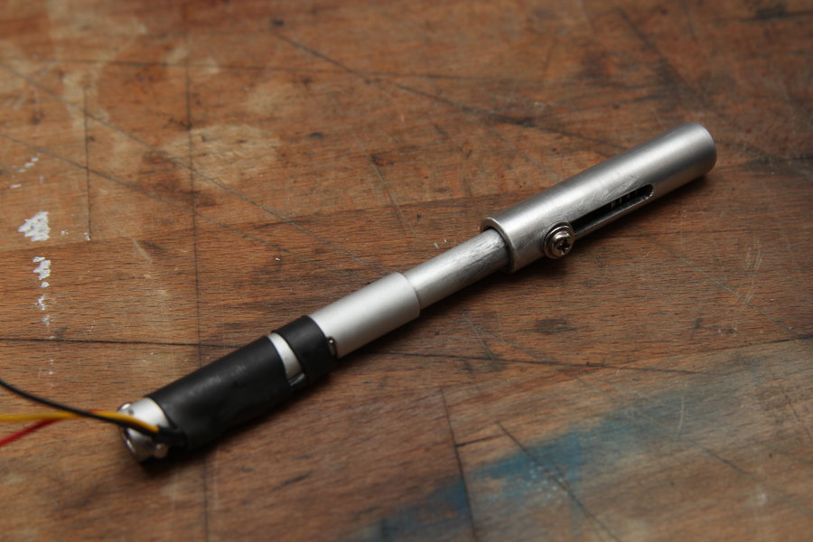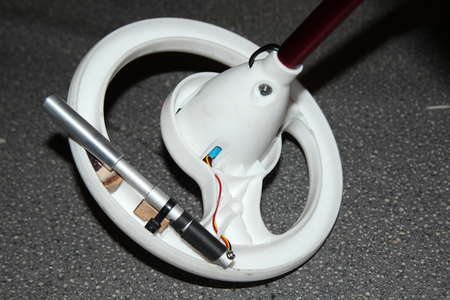 This time it is a bit smaller and can be routed between the aluminium tube and the steering rod.