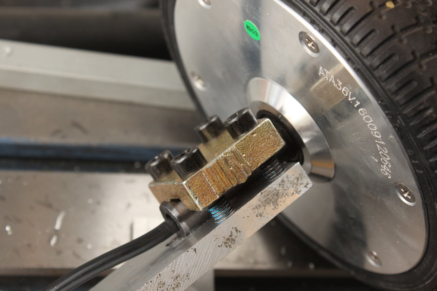 This allows the mounting plates from the Hoverboard to be used to clamp the shaft down, just like I did with the rear wheels earlier.