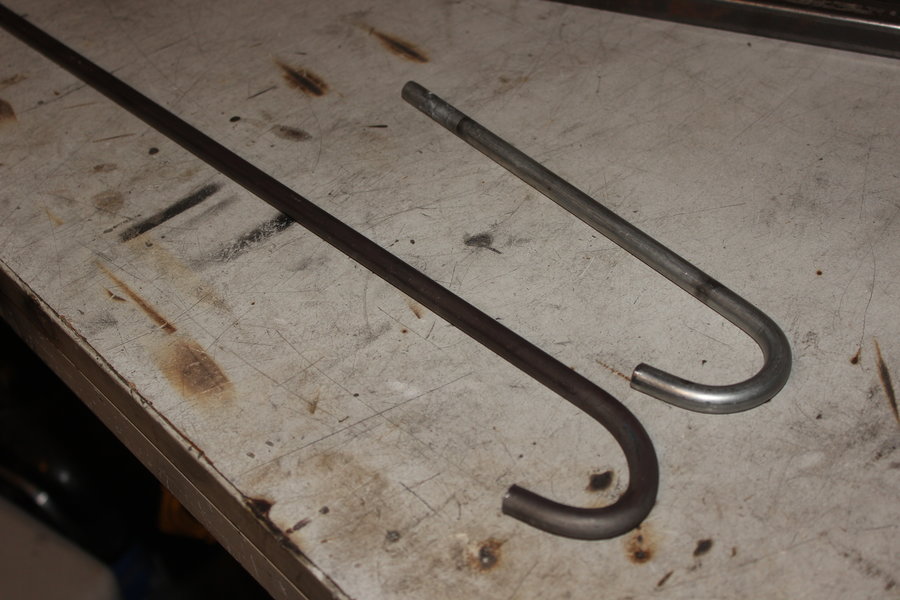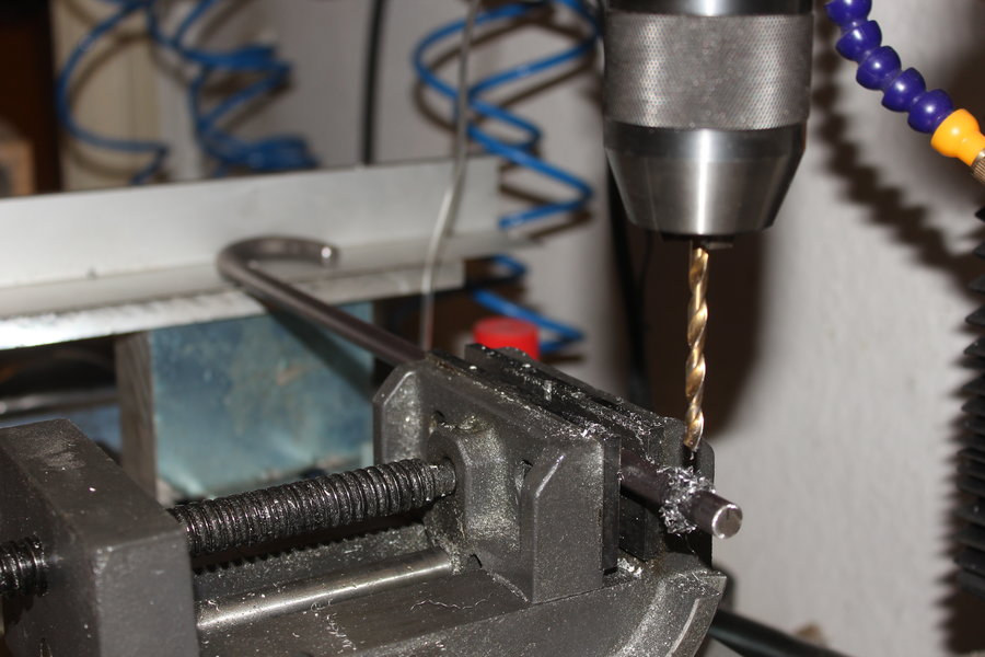 So I bought a steel rod with a diameter of 10mm and bent one end to a hook shape, similar to the original shaft. Without knowing the best length I made generously 15cm longer, which turned out to be perfect.