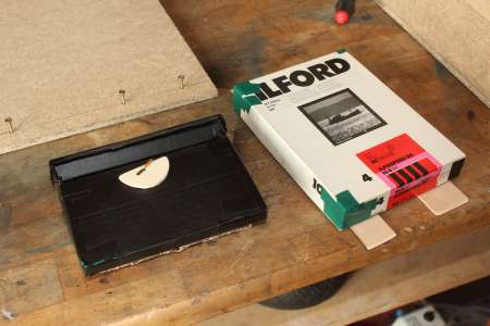 Den Rest der Zeit liegt es unbelichtet in einer Fotopapierbox, welche am Boden der Kamera befestigt ist.
