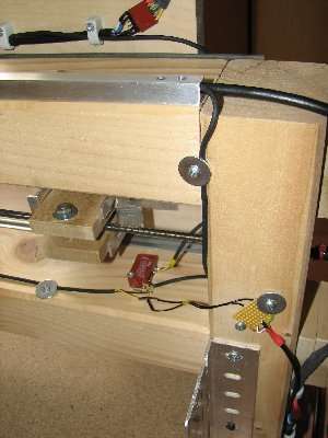 Hier ist die y-Achse von unten zu sehen; Die Schalter sind mit nur einer Schraube am Rahmen angeschraubt, damit sie sich später noch um einige mm ausrichten lassen.