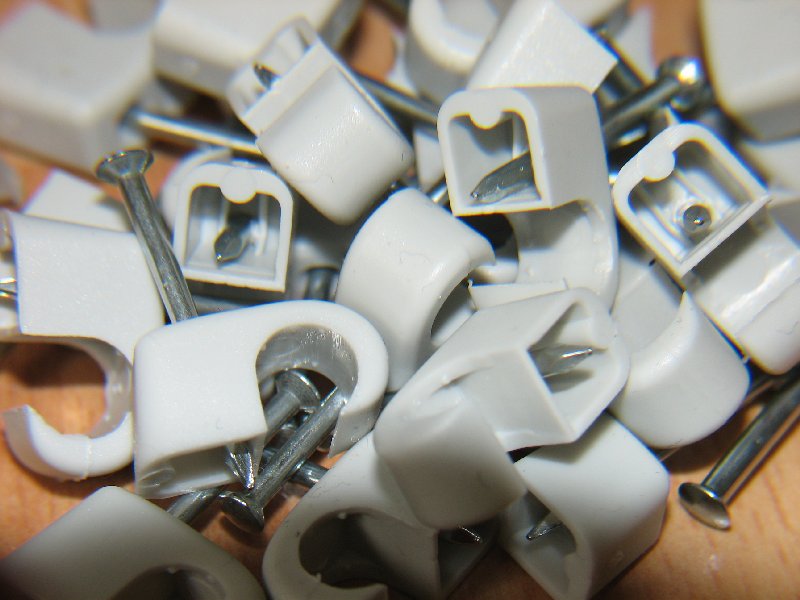 Kabelhalter, um die Kabel der Motoren am Holz zu befestigen. Die Nägel hab ich durch dünne Schrauben ersetzt, dadruch lässt sich das ganze später einfacher justieren oder auseinandernehmen.