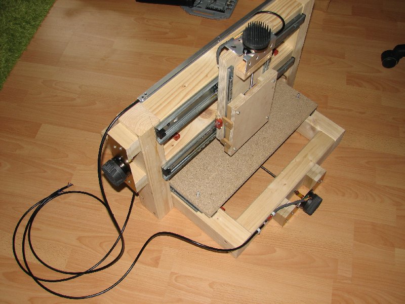 Sobald eine Achse ihr Ende erreicht (oder z.B. der Stecker aus der Steuerbox gezogen wird) stoppt EMC2 (bzw nach Update auf Version 2.5 umbenannt auf LinuxCNC) die Schrittmotoren.