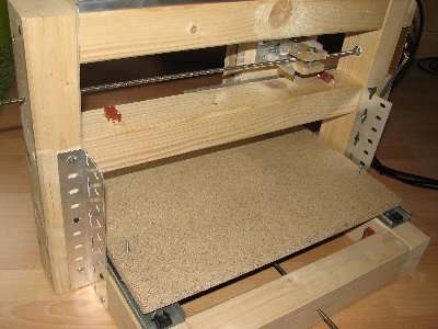 Als erstes hab ich allerdings das Gerüst mit zwei Aluwinkeln versteift, da es doch etwas zu viel wackelte.
