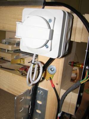 Dazu hab ich in den Deckel einer Abzeigdose eine Steckdose eingebaut. Zwischen Steckdose und einem mit der Dose verbundenen Stecker hab ich eine Relais gesetzt, die dann ein angeschlossenes Gerät schaltet.