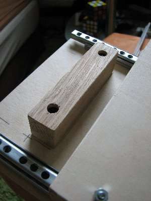In einen Holzklotz werden dafür auf beiden Seiten Kugellager versenkt. Dadurch kann die Stange nicht nach oben oder unten verrutschen