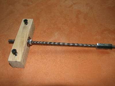 Das bisschen Holz darunter dient als Abstand, da sonst die Gewindestange zu sehr weggedrückt würde, wodurch sie sich schwerer drehen lässt.