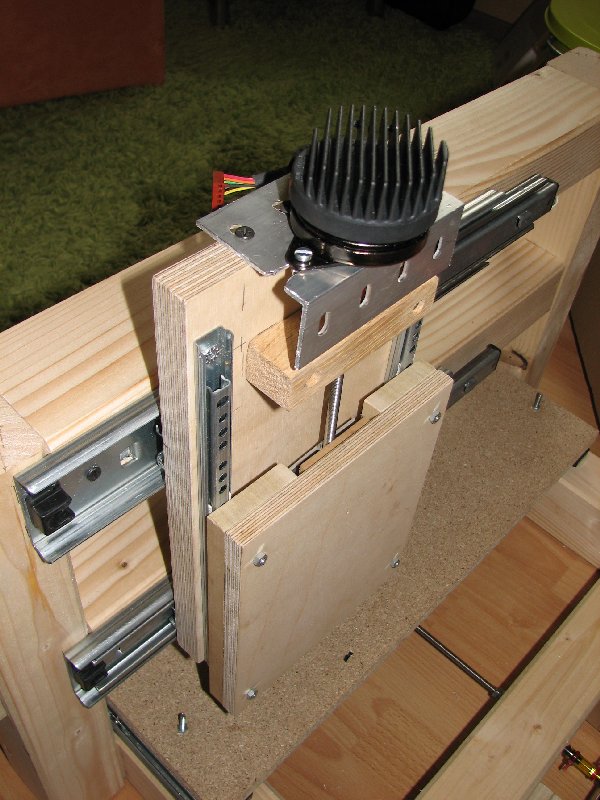 Auch sind die Ausziehschienen, welche ich für die beiden anderen Achsen verwendet hab viel zu groß und schwer.