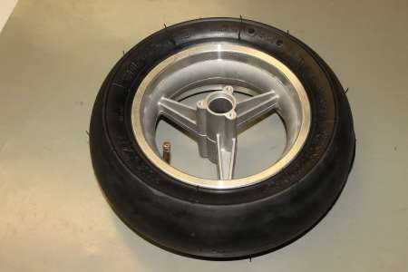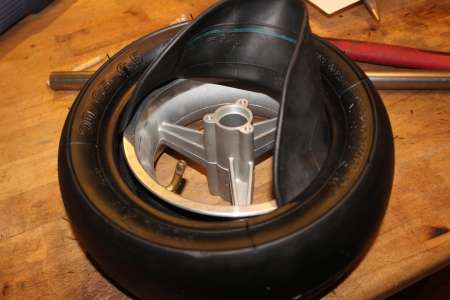 Getting the tube on the wheel rim wasn't easy, but worked out quite well at the end. Later I will get a cap for the valve, to seal it against dirt.